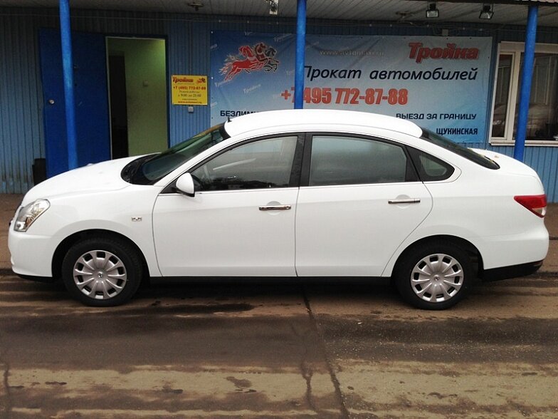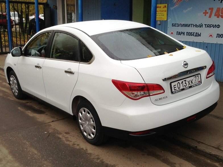 Московская прокатная компания «АрендаАвто-мнр» предлагает взять в аренду Nissan Almera IV MT белого цвета с механической коробкой передач по низкой цене.